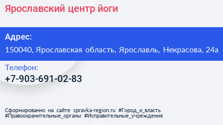 Ярославский центр йоги по адресу 150040, Ярославская область, Ярославль, Некрасова, 24а в дальнейшем Организация, размещена в следующих категориях: