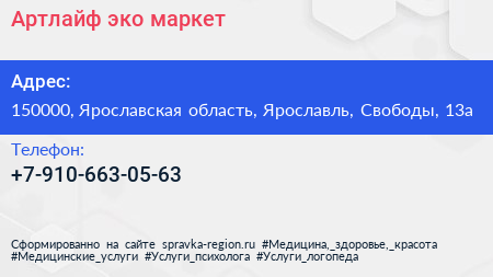 Артлайф, эко-маркет по адресу 150000, Ярославская область, Ярославль, Свободы, 13а в дальнейшем Организация, размещена в следующих категориях: