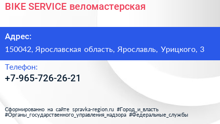 BIKE SERVICE, веломастерская по адресу 150042, Ярославская область, Ярославль, Урицкого, 3 в дальнейшем Организация, размещена в следующих категориях: