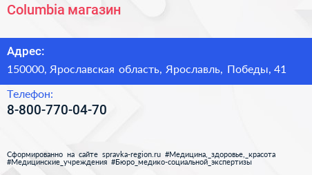 Columbia, магазин по адресу 150000, Ярославская область, Ярославль, Победы, 41 в дальнейшем Организация, размещена в следующих категориях: