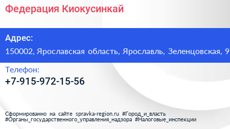Федерация Киокусинкай по адресу 150002, Ярославская область, Ярославль, Зеленцовская, 9 в дальнейшем Организация, размещена в следующих категориях: