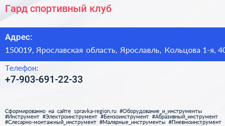 Гард, спортивный клуб по адресу 150019, Ярославская область, Ярославль, Кольцова 1-я, 40 в дальнейшем Организация, размещена в следующих категориях:
