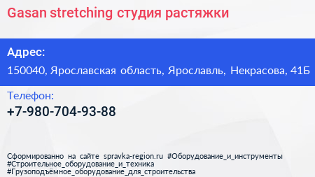 Gasan stretching, студия растяжки по адресу 150040, Ярославская область, Ярославль, Некрасова, 41Б в дальнейшем Организация, размещена в следующих категориях: