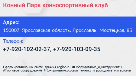 Конный Парк, конноспортивный клуб по адресу 150007, Ярославская область, Ярославль, Мостецкая, 8Б в дальнейшем Организация, размещена в следующих категориях: