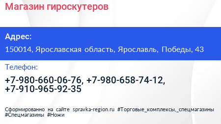 Магазин гироскутеров по адресу 150014, Ярославская область, Ярославль, Победы, 43 в дальнейшем Организация, размещена в следующих категориях: