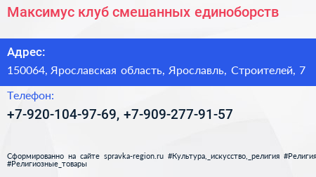 Максимус, клуб смешанных единоборств по адресу 150064, Ярославская область, Ярославль, Строителей, 7 в дальнейшем Организация, размещена в следующих категориях: