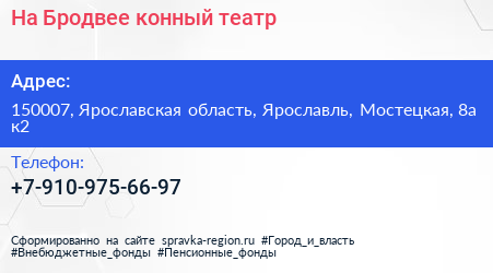 На Бродвее, конный театр по адресу 150007, Ярославская область, Ярославль, Мостецкая, 8а к2 в дальнейшем Организация, размещена в следующих категориях: