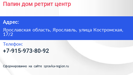 Папин дом, ретрит-центр по адресу Ярославская область, Ярославль, улица Костромская, 17/2 в дальнейшем Организация, размещена в следующих категориях: