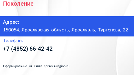 Поколение по адресу 150054, Ярославская область, Ярославль, Тургенева, 22 в дальнейшем Организация, размещена в следующих категориях: