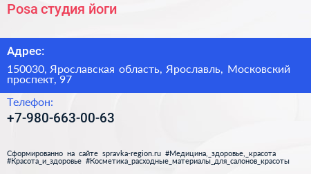 Posa, студия йоги по адресу 150030, Ярославская область, Ярославль, Московский проспект, 97 в дальнейшем Организация, размещена в следующих категориях: