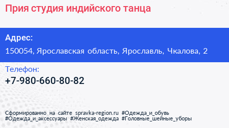 Прия, студия индийского танца по адресу 150054, Ярославская область, Ярославль, Чкалова, 2 в дальнейшем Организация, размещена в следующих категориях: