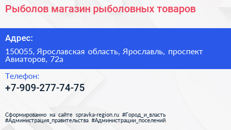 Рыболов, магазин рыболовных товаров по адресу 150055, Ярославская область, Ярославль, проспект Авиаторов, 72а в дальнейшем Организация, размещена в следующих категориях:
