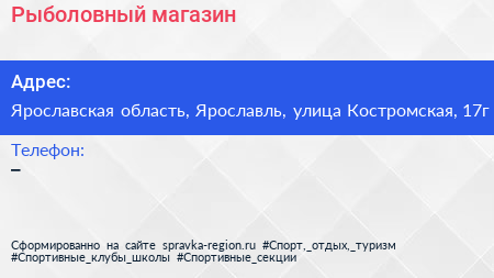 Рыболовный магазин по адресу Ярославская область, Ярославль, улица Костромская, 17г в дальнейшем Организация, размещена в следующих категориях: