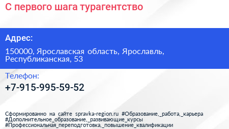 С первого шага, турагентство по адресу 150000, Ярославская область, Ярославль, Республиканская, 53 в дальнейшем Организация, размещена в следующих категориях: