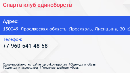 Спарта, клуб единоборств по адресу 150049, Ярославская область, Ярославль, Лисицына, 30 к2 в дальнейшем Организация, размещена в следующих категориях: