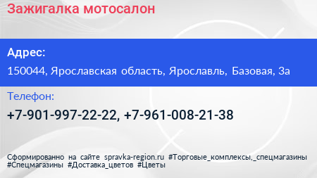 Зажигалка, мотосалон по адресу 150044, Ярославская область, Ярославль, Базовая, 3а в дальнейшем Организация, размещена в следующих категориях: