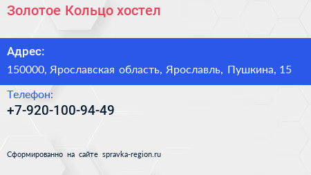 Золотое Кольцо, хостел по адресу 150000, Ярославская область, Ярославль, Пушкина, 15 в дальнейшем Организация, размещена в следующих категориях: