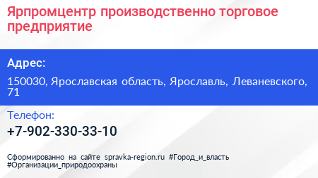 Ярпромцентр, производственно-торговое предприятие по адресу 150030, Ярославская область, Ярославль, Леваневского, 71 в дальнейшем Организация, размещена в следующих категориях: