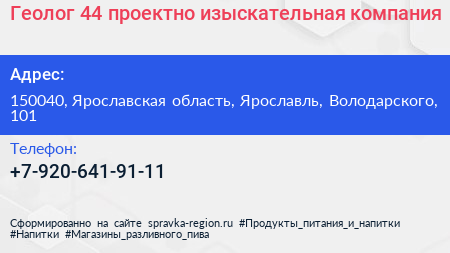 Геолог 44, проектно-изыскательная компания по адресу 150040, Ярославская область, Ярославль, Володарского, 101 в дальнейшем Организация, размещена в следующих категориях: