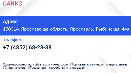 САИКС по адресу 150014, Ярославская область, Ярославль, Рыбинская, 44а в дальнейшем Организация, размещена в следующих категориях:
