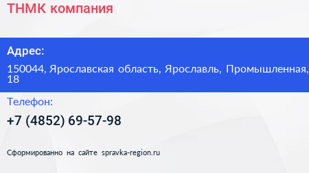 ТНМК, компания по адресу 150044, Ярославская область, Ярославль, Промышленная, 18 в дальнейшем Организация, размещена в следующих категориях: