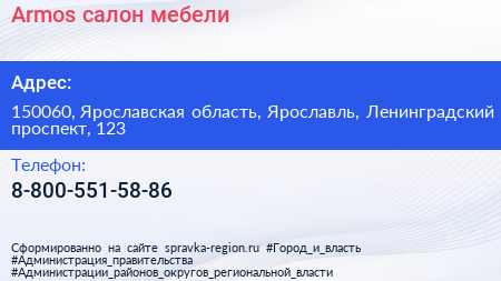 Armos, салон мебели по адресу 150060, Ярославская область, Ярославль, Ленинградский проспект, 123 в дальнейшем Организация, размещена в следующих категориях: