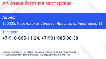 Art Атака, багетная мастерская по адресу 150025, Ярославская область, Ярославль, Авиаторов, 11 в дальнейшем Организация, размещена в следующих категориях: