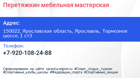Перетяжкин, мебельная мастерская по адресу 150022, Ярославская область, Ярославль, Тормозное шоссе, 1 ст3 в дальнейшем Организация, размещена в следующих категориях: