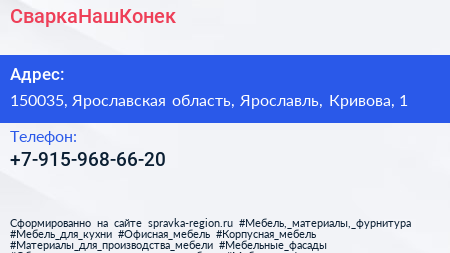 #СваркаНашКонек по адресу 150035, Ярославская область, Ярославль, Кривова, 1 в дальнейшем Организация, размещена в следующих категориях: