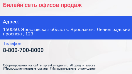 Билайн, сеть офисов продаж по адресу 150060, Ярославская область, Ярославль, Ленинградский проспект, 123 в дальнейшем Организация, размещена в следующих категориях: