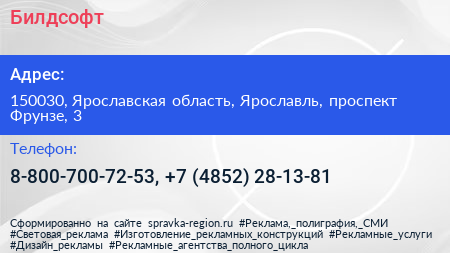 Билдсофт по адресу 150030, Ярославская область, Ярославль, проспект Фрунзе, 3 в дальнейшем Организация, размещена в следующих категориях: