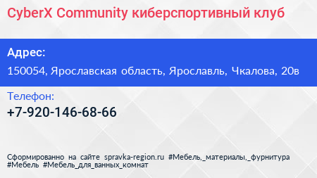 CyberX Community, киберспортивный клуб по адресу 150054, Ярославская область, Ярославль, Чкалова, 20в в дальнейшем Организация, размещена в следующих категориях: