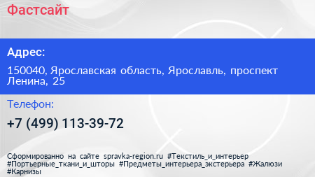 Фастсайт по адресу 150040, Ярославская область, Ярославль, проспект Ленина, 25 в дальнейшем Организация, размещена в следующих категориях: