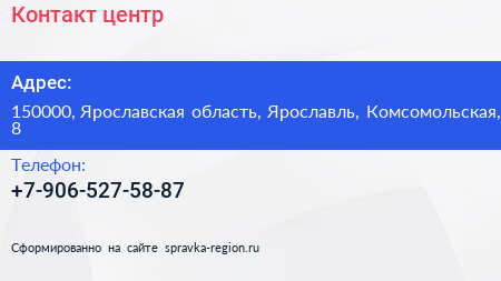 Контакт центр по адресу 150000, Ярославская область, Ярославль, Комсомольская, 8 в дальнейшем Организация, размещена в следующих категориях:
