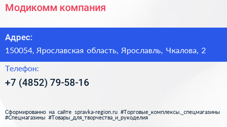 Модикомм, компания по адресу 150054, Ярославская область, Ярославль, Чкалова, 2 в дальнейшем Организация, размещена в следующих категориях:
