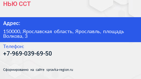 НЬЮ-ССТ по адресу 150000, Ярославская область, Ярославль, площадь Волкова, 3 в дальнейшем Организация, размещена в следующих категориях:
