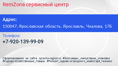 RemZona, сервисный центр по адресу 150047, Ярославская область, Ярославль, Чкалова, 17Б в дальнейшем Организация, размещена в следующих категориях: