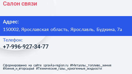 Салон связи по адресу 150002, Ярославская область, Ярославль, Будкина, 7а в дальнейшем Организация, размещена в следующих категориях: