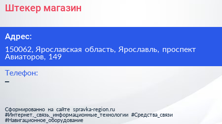 Штекер, магазин по адресу 150062, Ярославская область, Ярославль, проспект Авиаторов, 149 в дальнейшем Организация, размещена в следующих категориях: