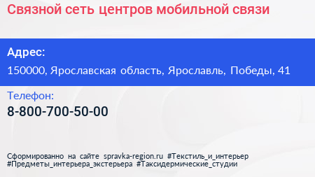 Связной, сеть центров мобильной связи по адресу 150000, Ярославская область, Ярославль, Победы, 41 в дальнейшем Организация, размещена в следующих категориях:
