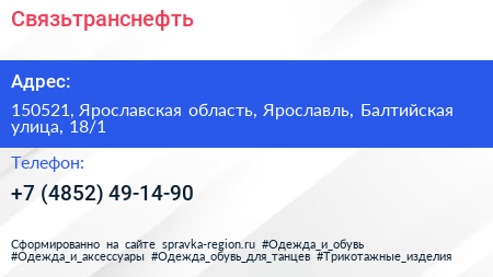 Связьтранснефть по адресу 150521, Ярославская область, Ярославль, Балтийская улица, 18/1 в дальнейшем Организация, размещена в следующих категориях: