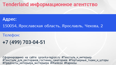 Tenderland, информационное агентство по адресу 150054, Ярославская область, Ярославль, Чехова, 2 в дальнейшем Организация, размещена в следующих категориях: