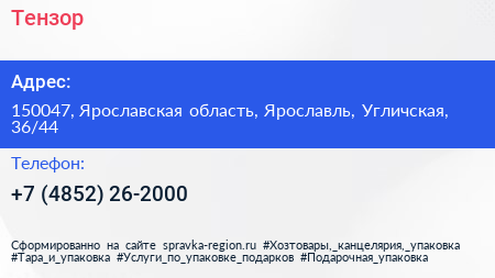 Тензор по адресу 150047, Ярославская область, Ярославль, Угличская, 36/44 в дальнейшем Организация, размещена в следующих категориях: