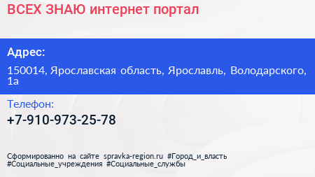 ВСЕХ ЗНАЮ, интернет-портал по адресу 150014, Ярославская область, Ярославль, Володарского, 1а в дальнейшем Организация, размещена в следующих категориях:
