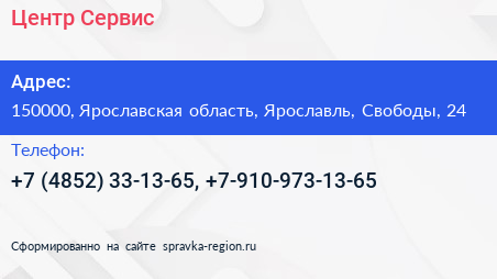 Центр-Сервис по адресу 150000, Ярославская область, Ярославль, Свободы, 24 в дальнейшем Организация, размещена в следующих категориях:
