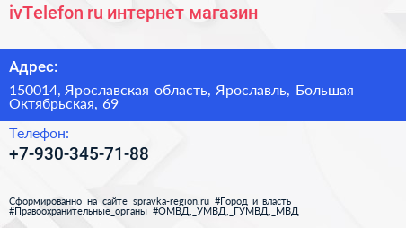 ivTelefon.ru, интернет-магазин по адресу 150014, Ярославская область, Ярославль, Большая Октябрьская, 69 в дальнейшем Организация, размещена в следующих категориях: