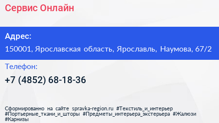 Сервис Онлайн по адресу 150001, Ярославская область, Ярославль, Наумова, 67/2 в дальнейшем Организация, размещена в следующих категориях: