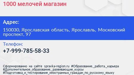 1000 мелочей, магазин по адресу 150030, Ярославская область, Ярославль, Московский проспект, 97 в дальнейшем Организация, размещена в следующих категориях: