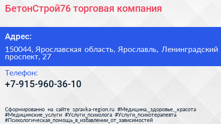 БетонСтрой76, торговая компания по адресу 150044, Ярославская область, Ярославль, Ленинградский проспект, 27 в дальнейшем Организация, размещена в следующих категориях: