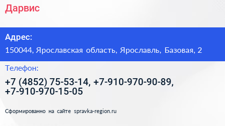 Дарвис по адресу 150044, Ярославская область, Ярославль, Базовая, 2 в дальнейшем Организация, размещена в следующих категориях:
